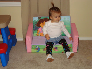 For MY birthday, Jennifer made an outfit for Prestley....that's how you know that it really is all about Prestley! And for the record, I'm perfectly OK with that. I love you Prestley Dawn. Sorry I couldn't get a better shot, it's really getting hard to make her stay still long enough to snap a picture.